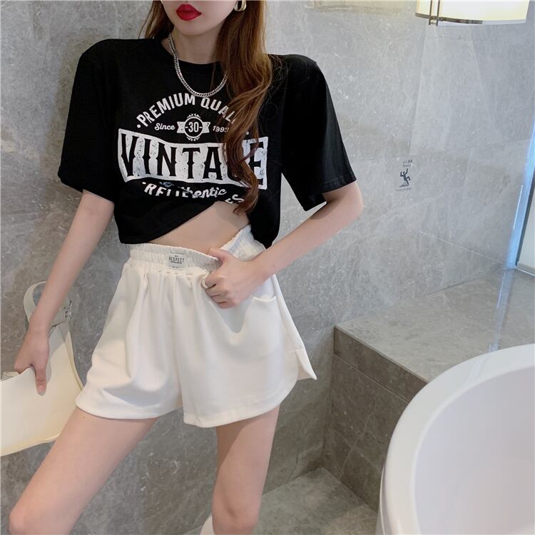 ブラックショートTシャツ サマールーズプリントトップス 夏物 フラワークラフター67944351030