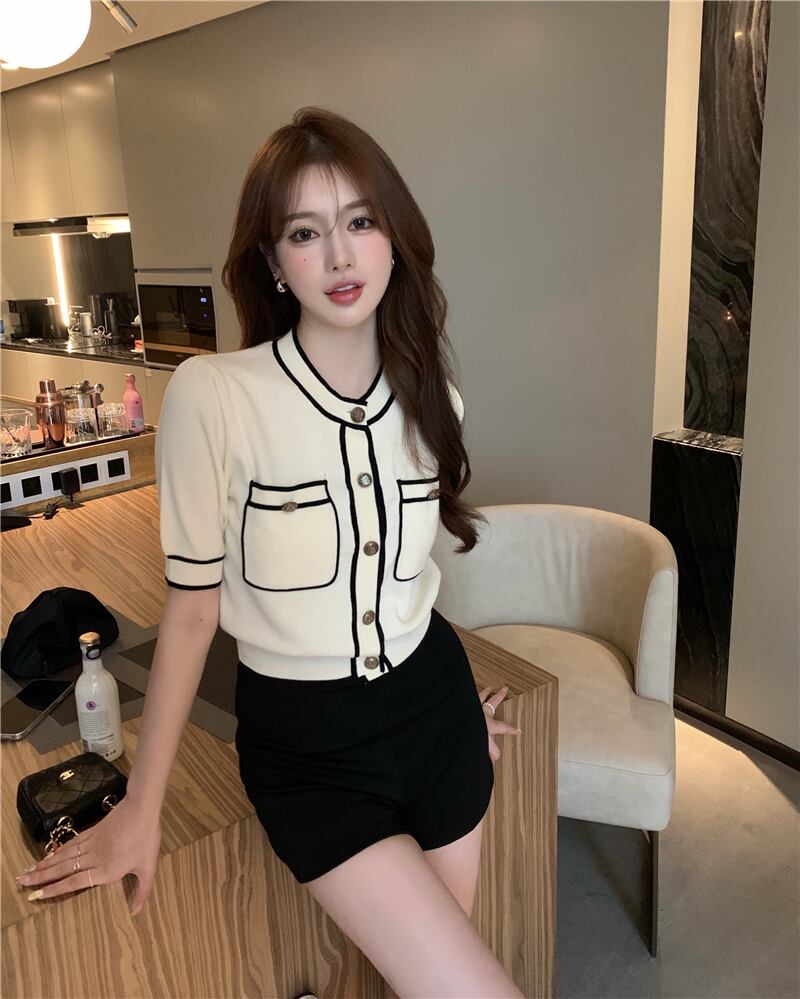 ニットジャケット カーディガンサマースタイルスリムショートトップス 夏物 フラワークラフター92272892084