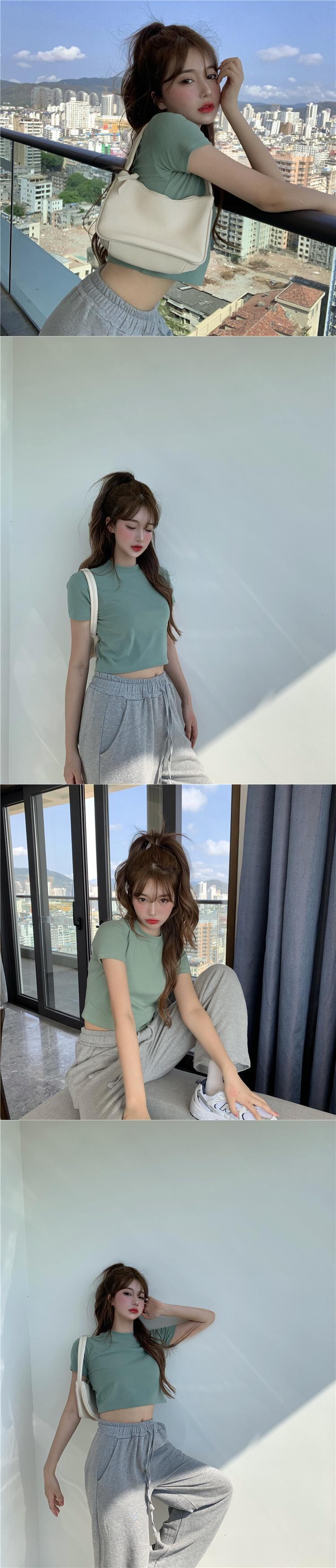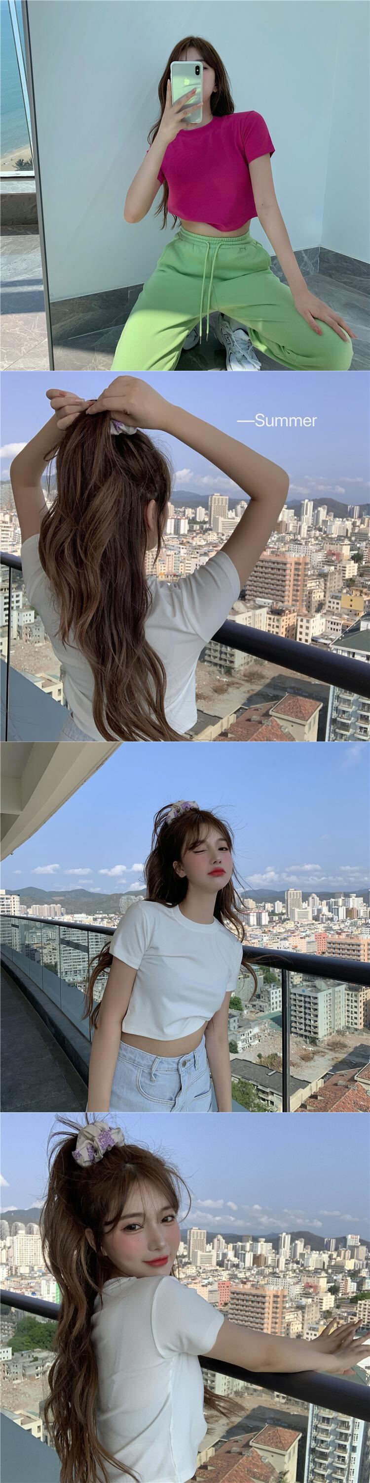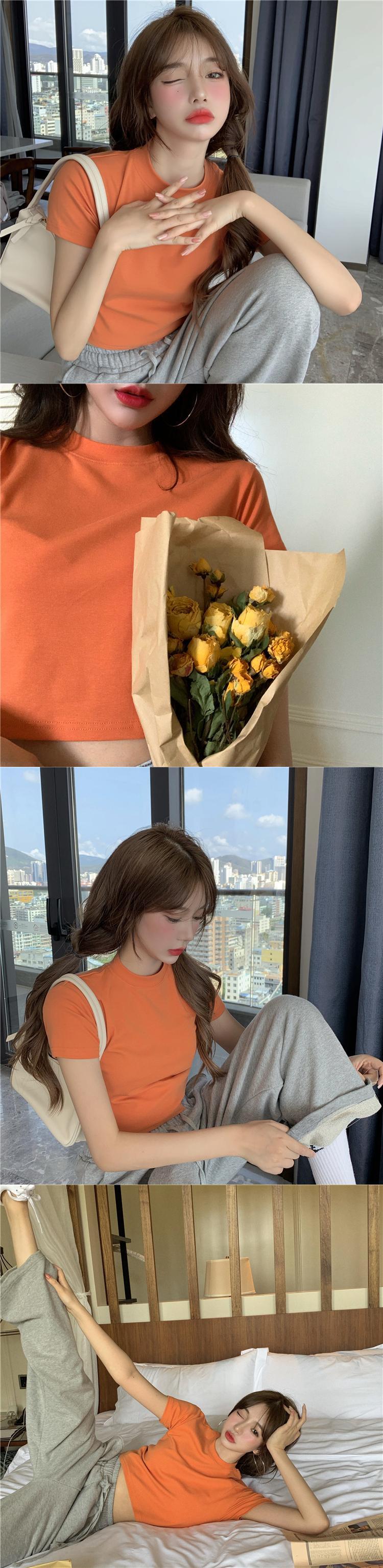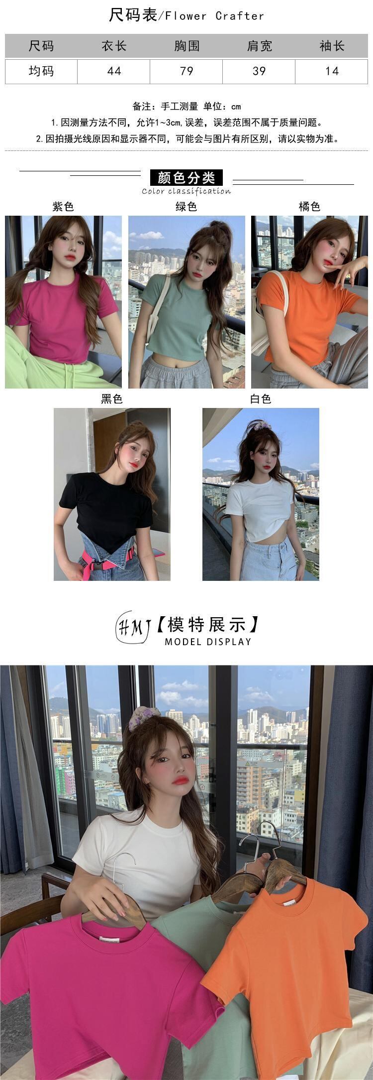 ショートTシャツ シャツ レディースサマーラウンドネックソリッド カラースタイルスリムトップス 夏物 Oネック ソリッドカラー フラワークラフター13538585390