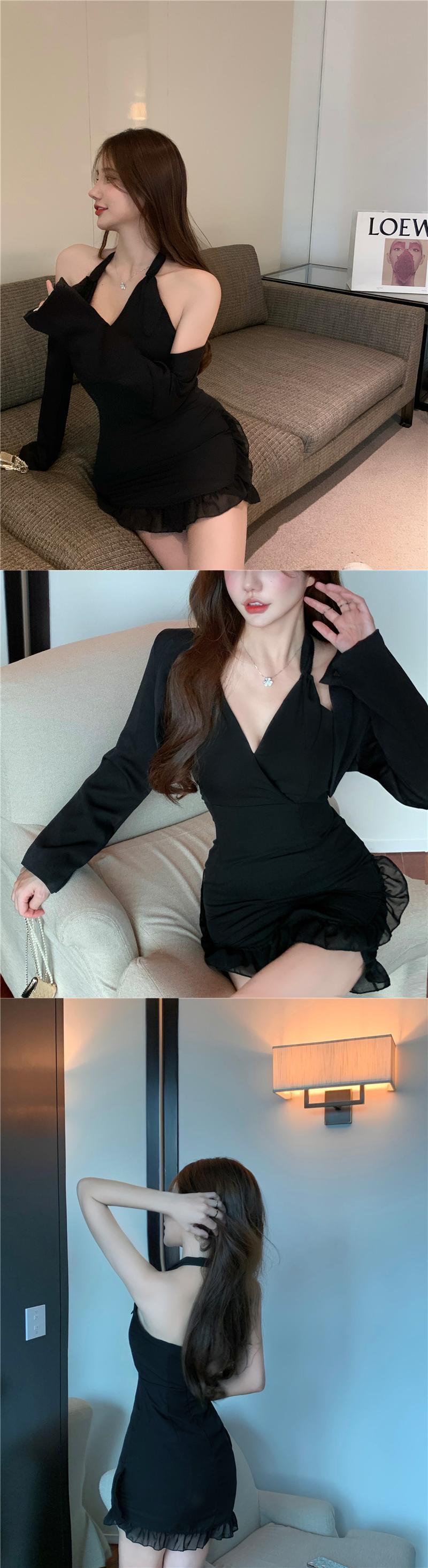 ブラックホルタードレス サマーリボンウェストレース薄手ショートスカート 夏物 フラワークラフター84063994227