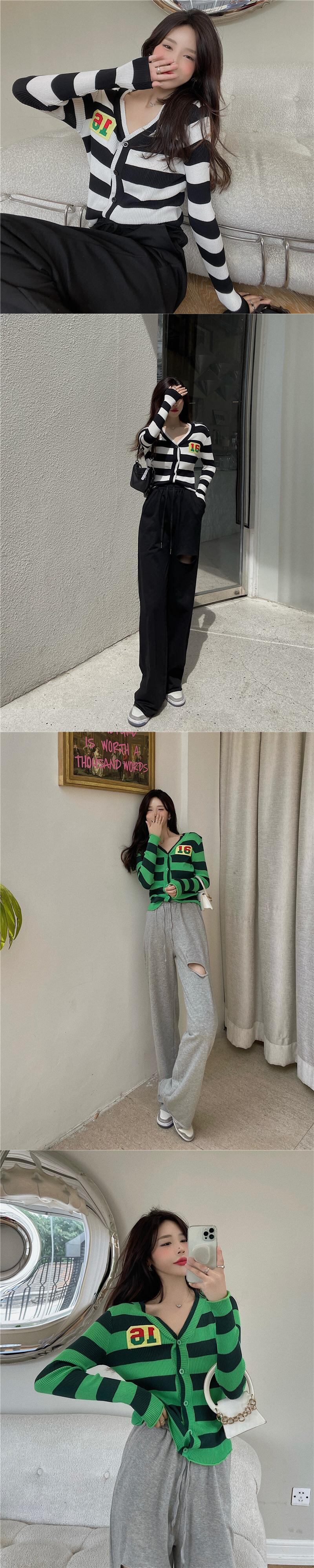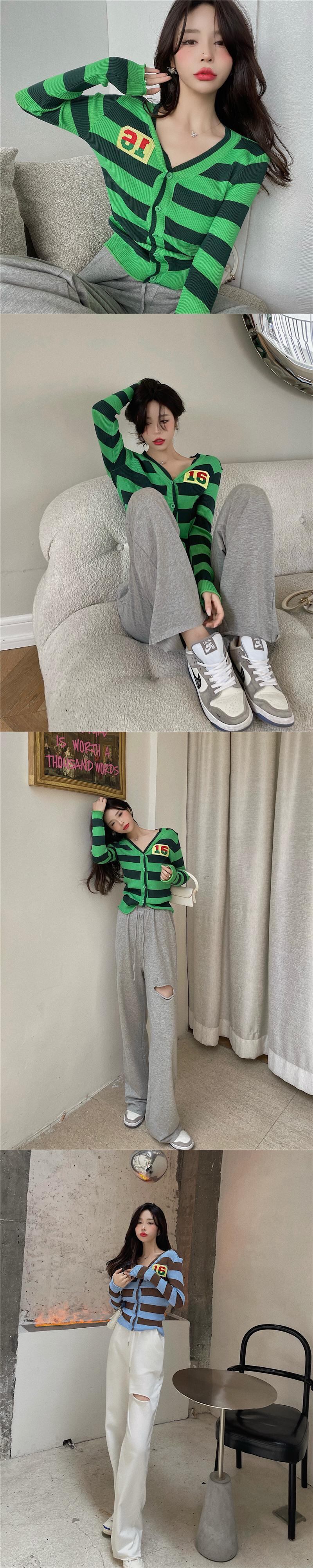 ストライプニットカーディガンサマー薄手シャツ レッドスタイルスリムVネックトップス 夏物 フラワークラフター44640311965