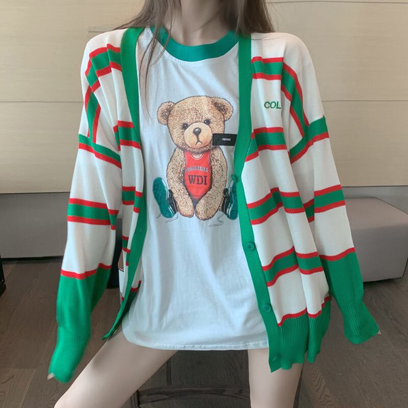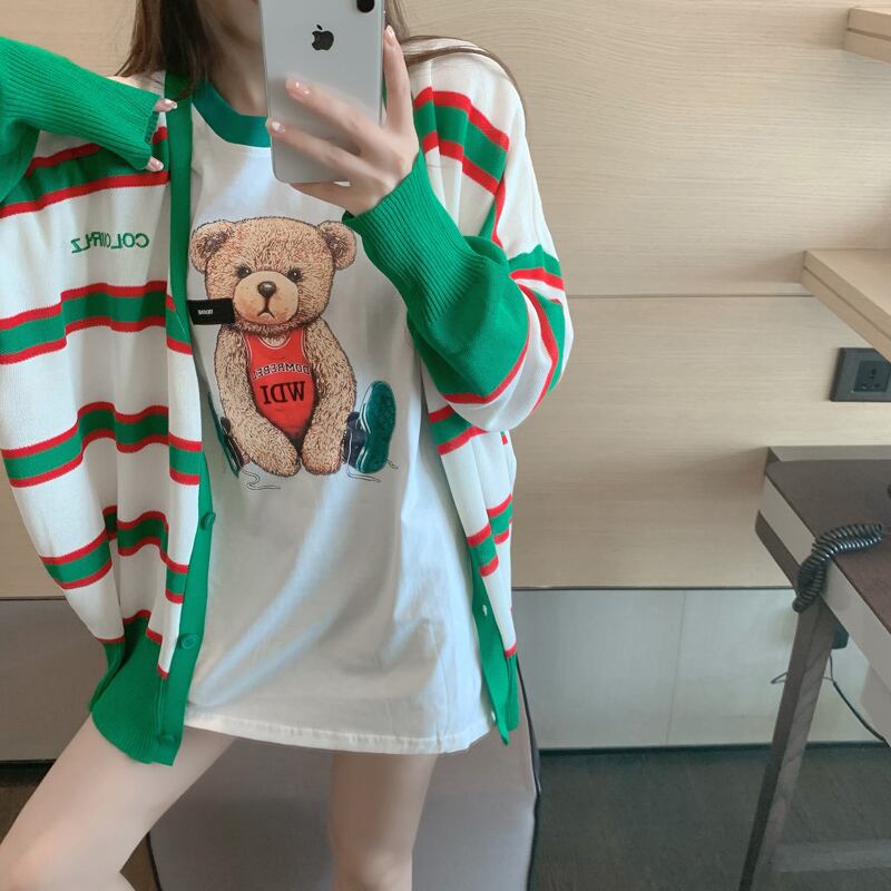 色:ストライプカーディガンワンピース,ホワイトTシャツシングルピース