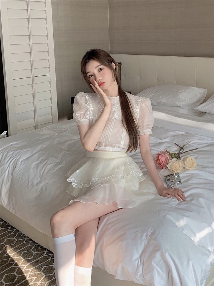 色:刺繍入りトップス,チュチュスカート一枚,ボトミングチューブトップ一枚