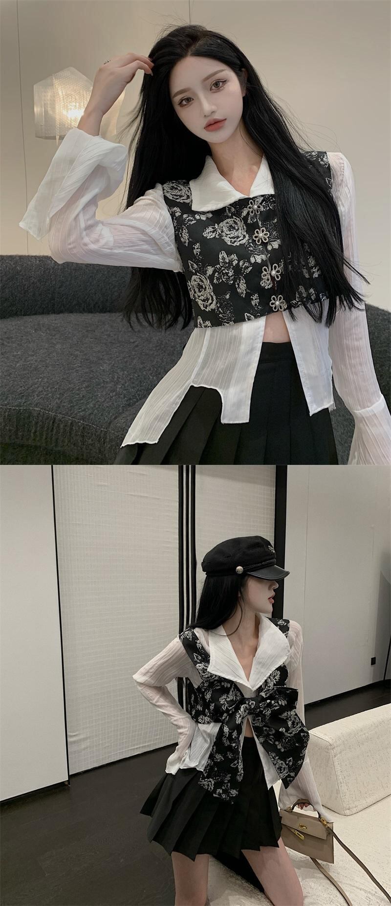 スタンダードフローラルオータムリボンショートトップス レッド レトロ 刺繍 秋物 花柄 フラワークラフター45108690128