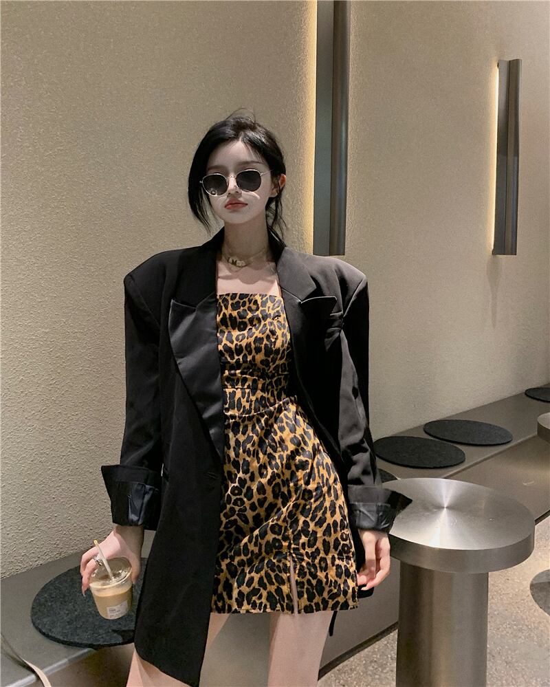 レッドブラックジャケット スプリングオータムルーズ ロング ストリート 春物 秋物 フラワークラフター24803093454