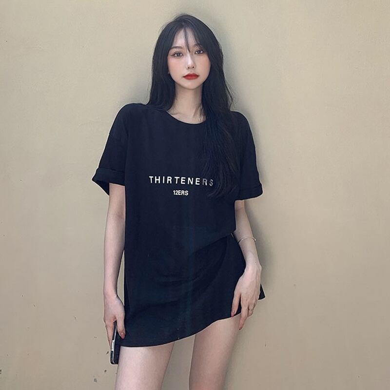 ルーズTシャツ シャツ レディースサマースタイルプリントブラックトップス 夏物 フラワークラフター65392298892