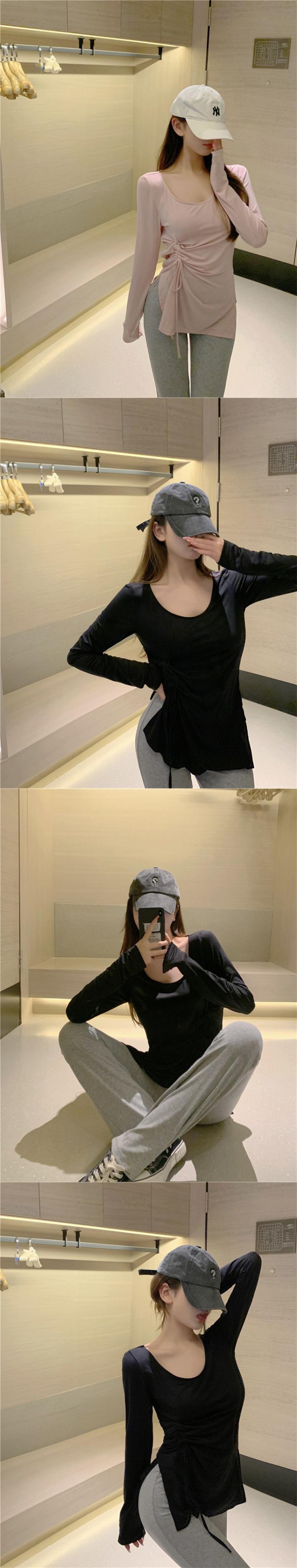 Tシャツ サマーギャザースリムショートトップス ロング ピンク 夏物 フラワークラフター29061501013