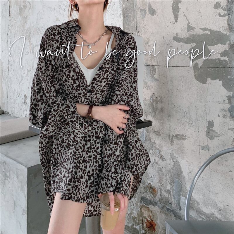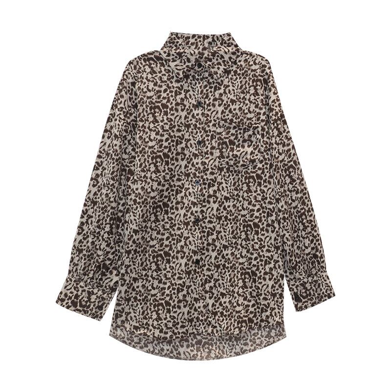 レオパードシャツ レディーススタンダードスプリングオータムスタイルルーズトップス ロング レトロ ストリート 春物 秋物 フラワークラフター73232970602