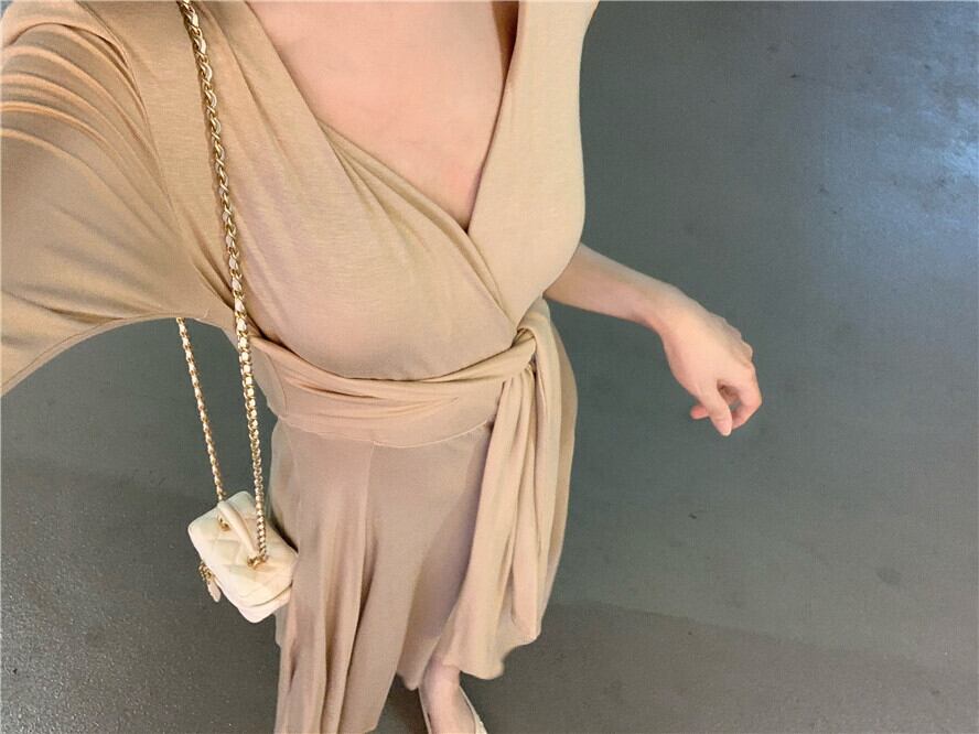 Vネックドレス サマーレッドウェストスカート 夏物 ピュア フラワークラフター88710756358