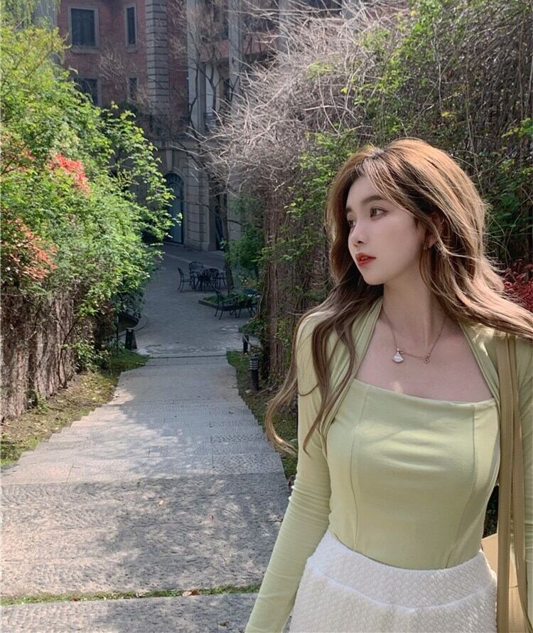 グリーンTシャツ サマーカラースリムトップス ロング 夏物 スクウェア フラワークラフター14192622515