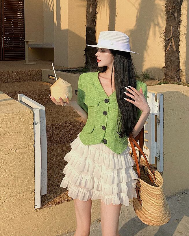 色:グリーントップシングルピース,ケーキスカートワンピース