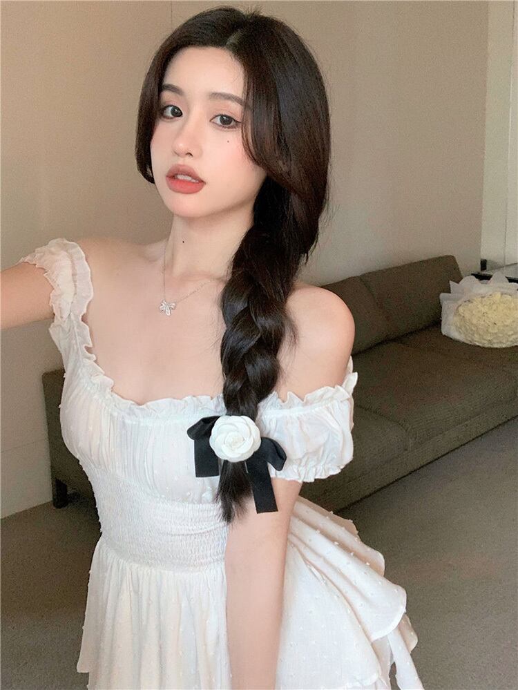 ブラックドレス サマースタイルウェストAラインスカート 夏物 フラワークラフター38081849626