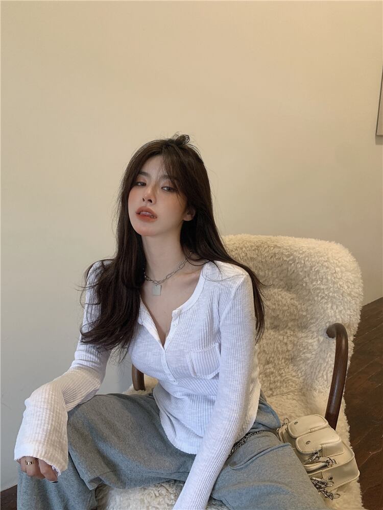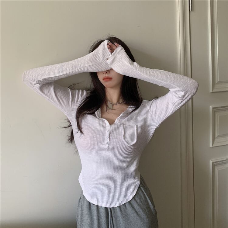 Tシャツ シャツ レッドホワイトスプリングオータムスリムラウンドネックトップス ロング 春物 秋物 Oネック フラワークラフター39252018328