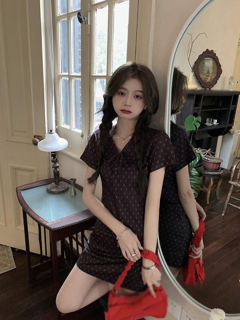 フローラルドレス サマーVネックウェスト薄手Aラインスカート 夏物 花柄 フラワークラフター22951229978