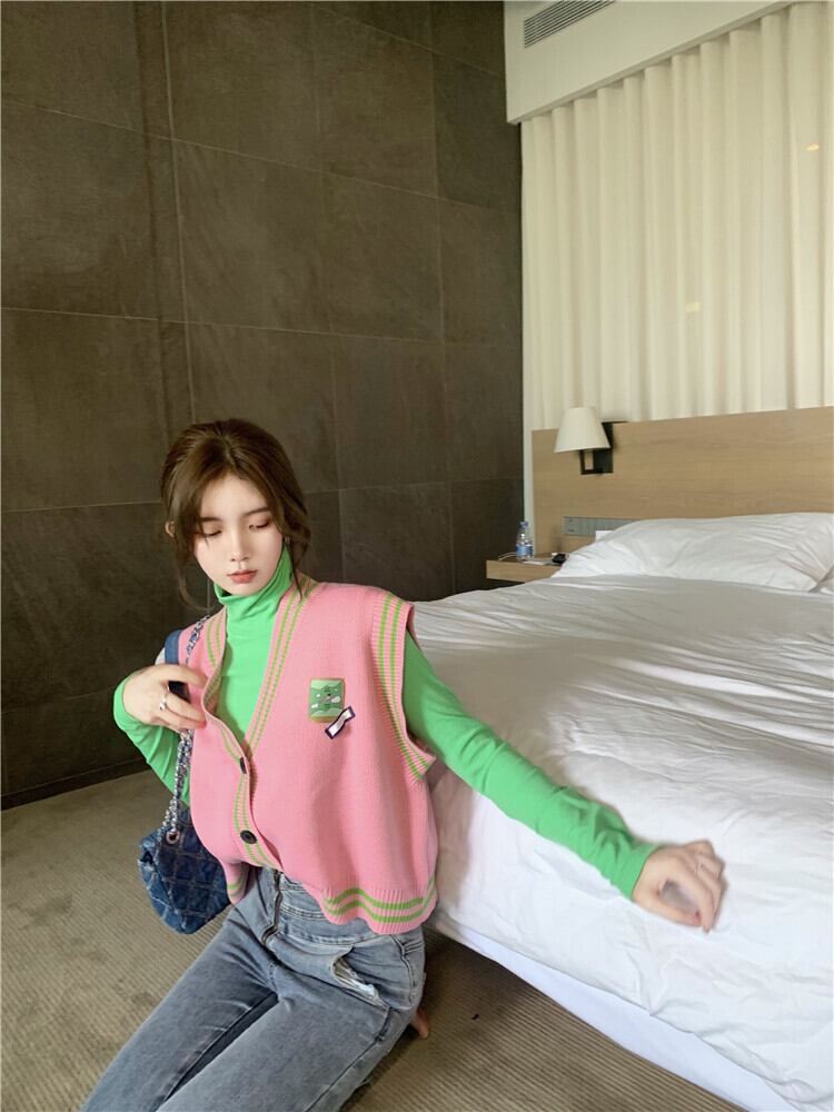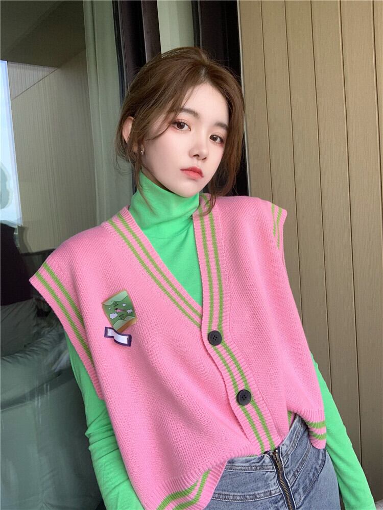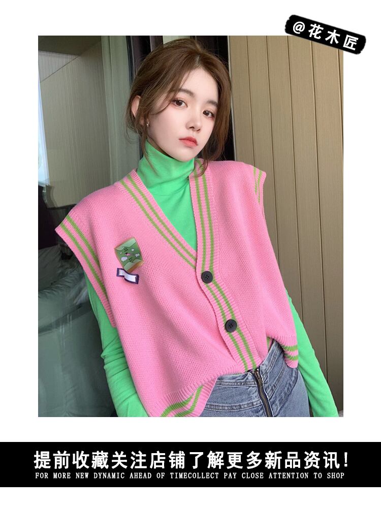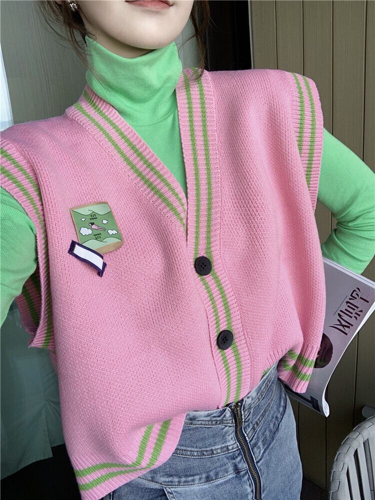 ニットレディーススプリングオータムルーズセーター スタイルノースリーブ ピンク 春物 秋物 フラワークラフター1401119460