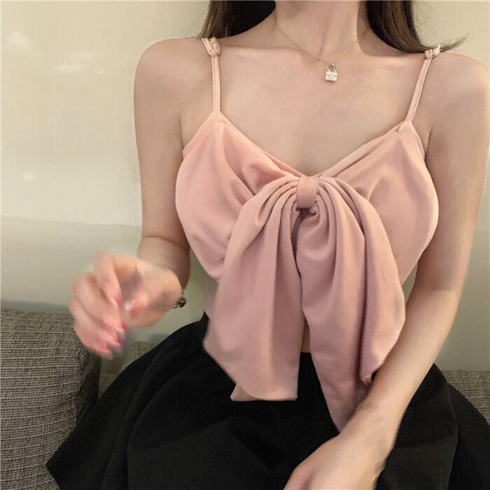 リボンサマースタイルショートトップス ピンク 大人ガーリー スウィート キュート カジュアル 夏物 フラワークラフター46733277180