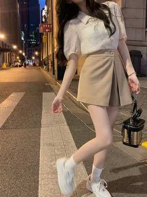 カーキカジュアルショーツ サマーハイウェストウェスト薄手ワイドレッグパンツ 夏物 ブルマー ワイドパンツ フラワークラフター25702454936