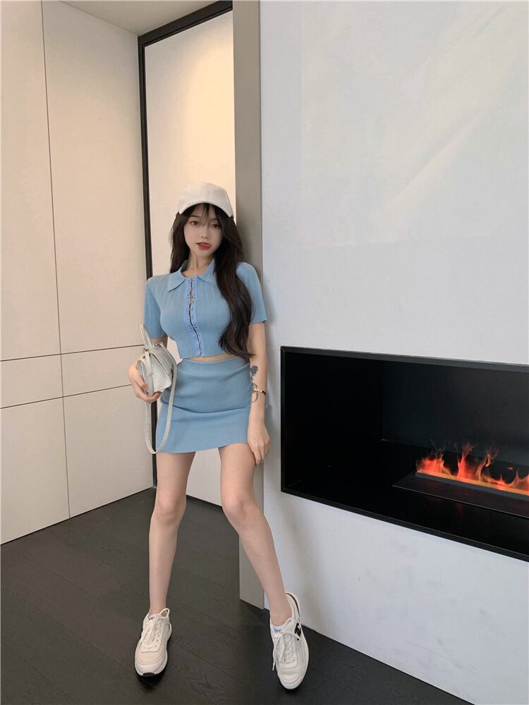 色:ブルートップシングルピース,ブラックトップシングルピース,青いスカートワンピース,黒スカートワンピース