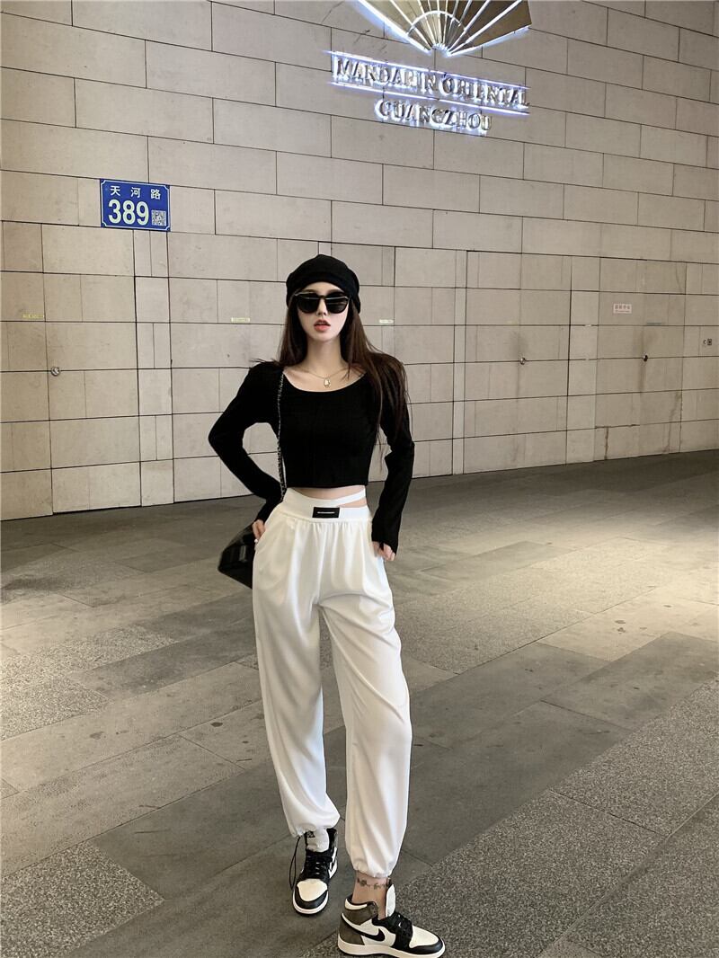 ホワイトハイウェストカジュアルパンツ オータムレギンス 秋物 フラワークラフター76123347803