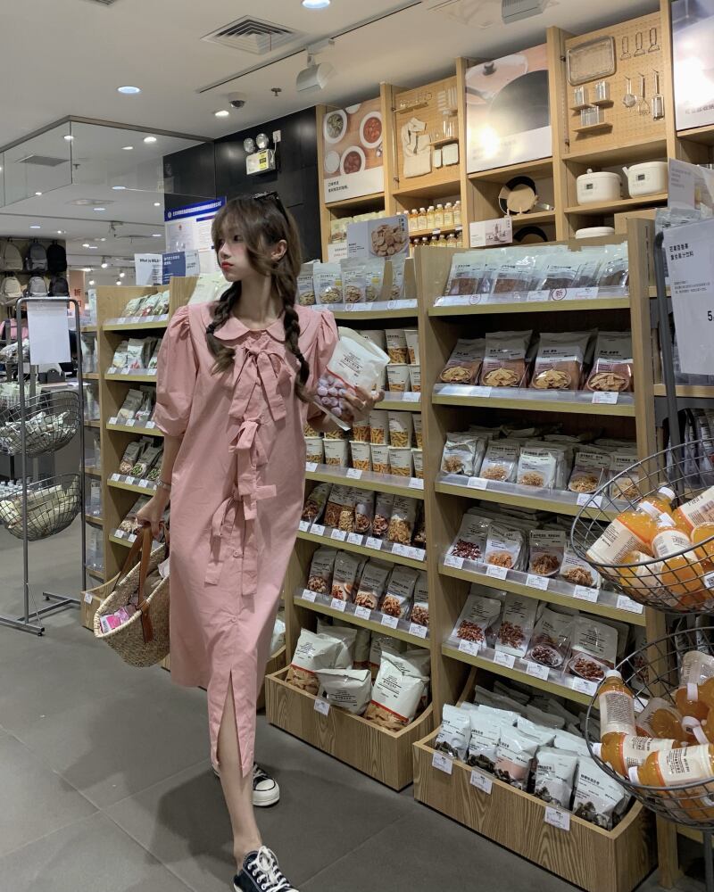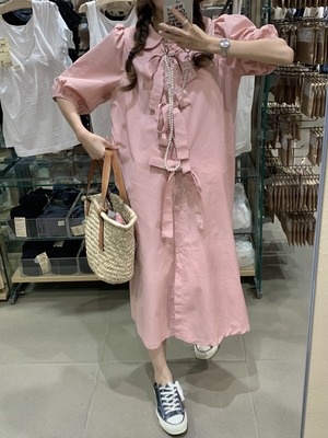 スリーブドレス サマーリボンルーズシャツ スカート ピンク 大人ガーリー スウィート キュート カジュアル 夏物 フラワークラフター22521720943