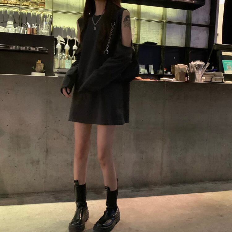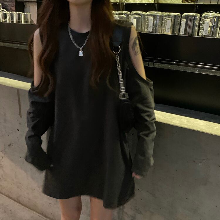 スタイルグレーセーター オータムルーズトップス ロング 秋物 オフショルダー フラワークラフター90726929049