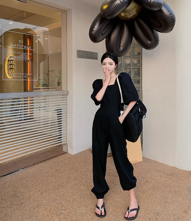 ブラックスリーブジャンプスーツ オールインワン レディースサマースタイルレギンス ハイウェストウェストパンツ 夏物 フラワークラフター83124302912