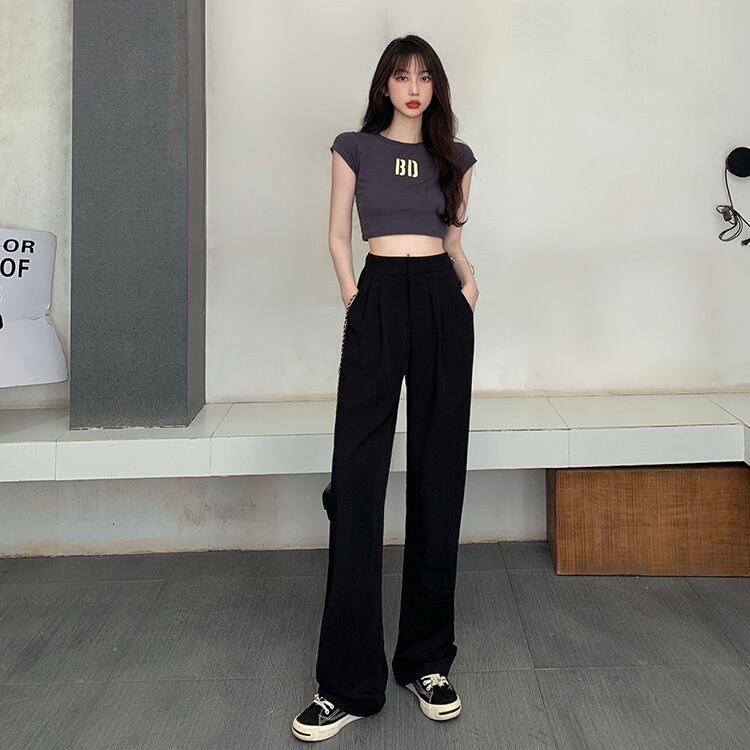 ブラックパンツ ルーズサマー薄手ハイウェストカジュアル 夏物 フラワークラフター74558067417