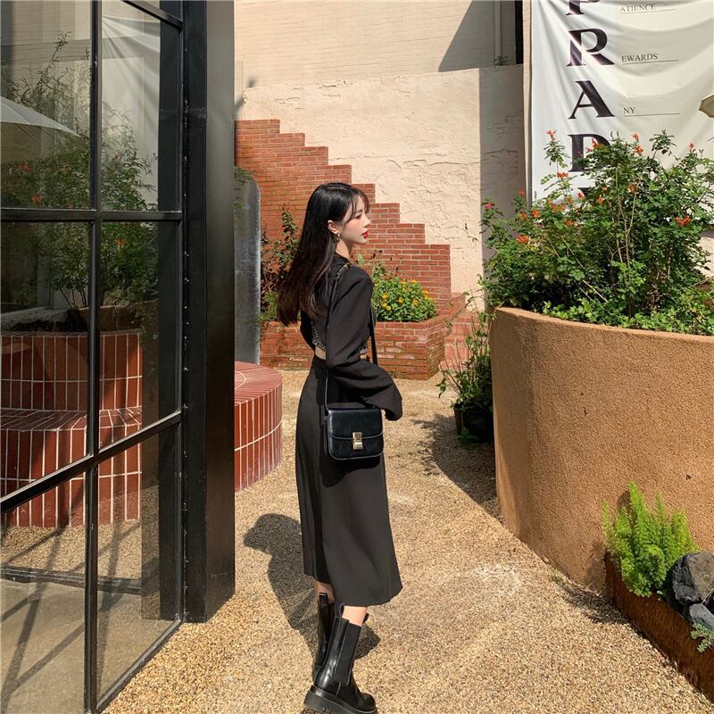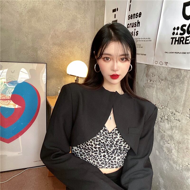 色:ヒョウスリング1枚,黒のブレザー,黒のハーフスカートワンピース