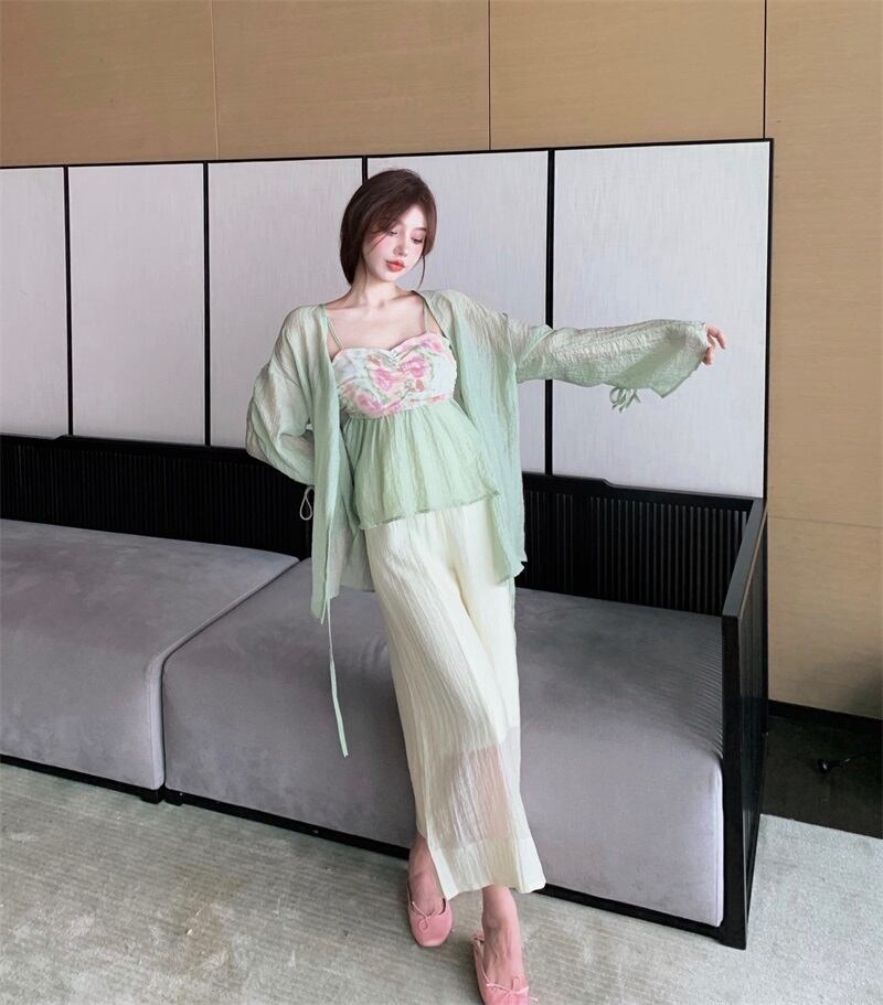 色:緑のスリング+日焼け止め,ピンクのスリング+日焼け止め,アプリコットパンツの単一のピース