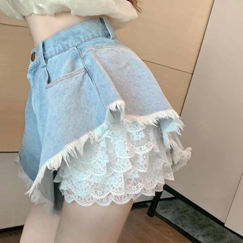 色:オフホワイトのトップシングルピース,ライトブルージーンズ,白いレースのレギンス