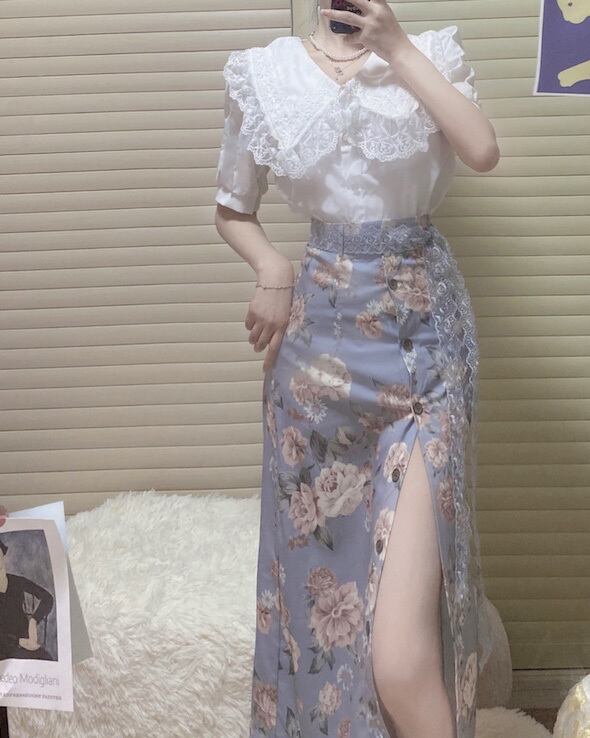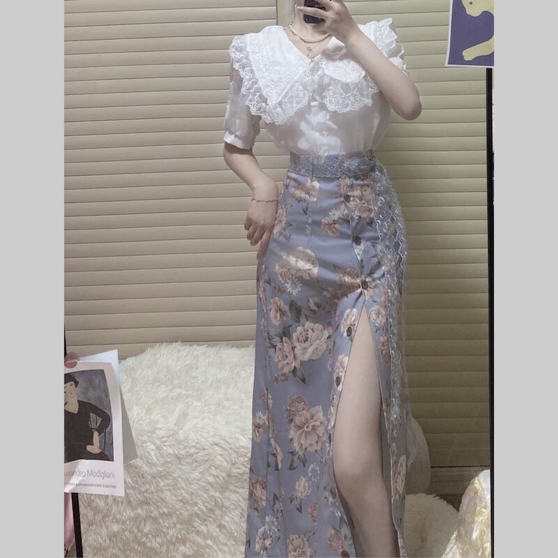 スカート サマースタンダードフローラルハイウェストウェスト薄手 レトロ 夏物 花柄 フラワークラフター15120001910