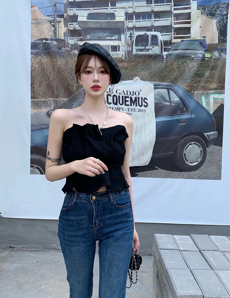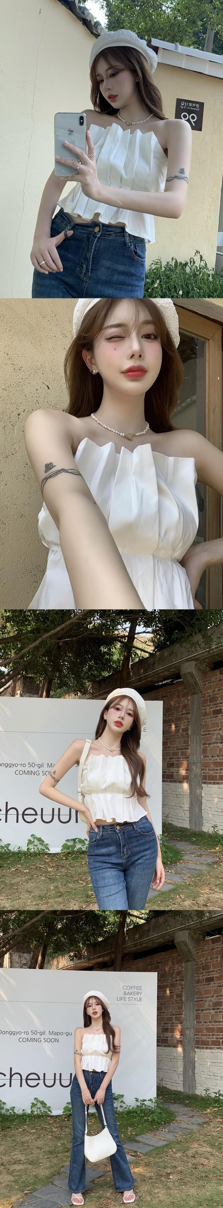 ホワイトトップス サマースリムショートストラップレス 夏物 フラワークラフター65040555486