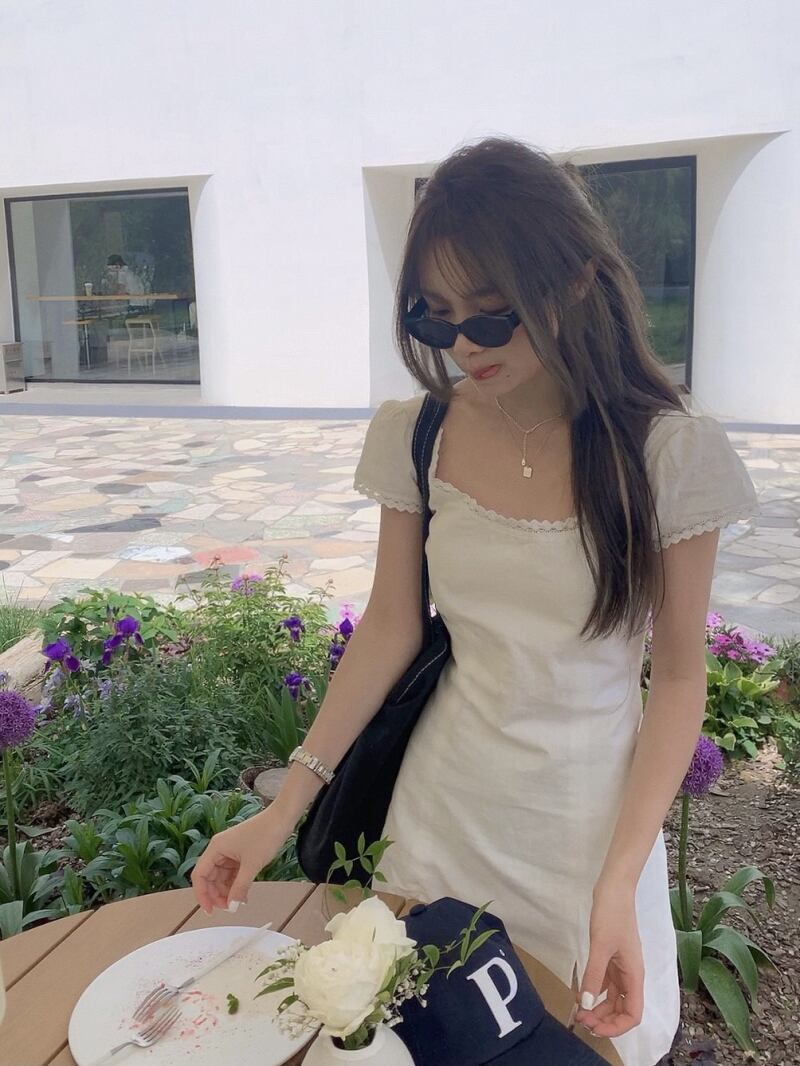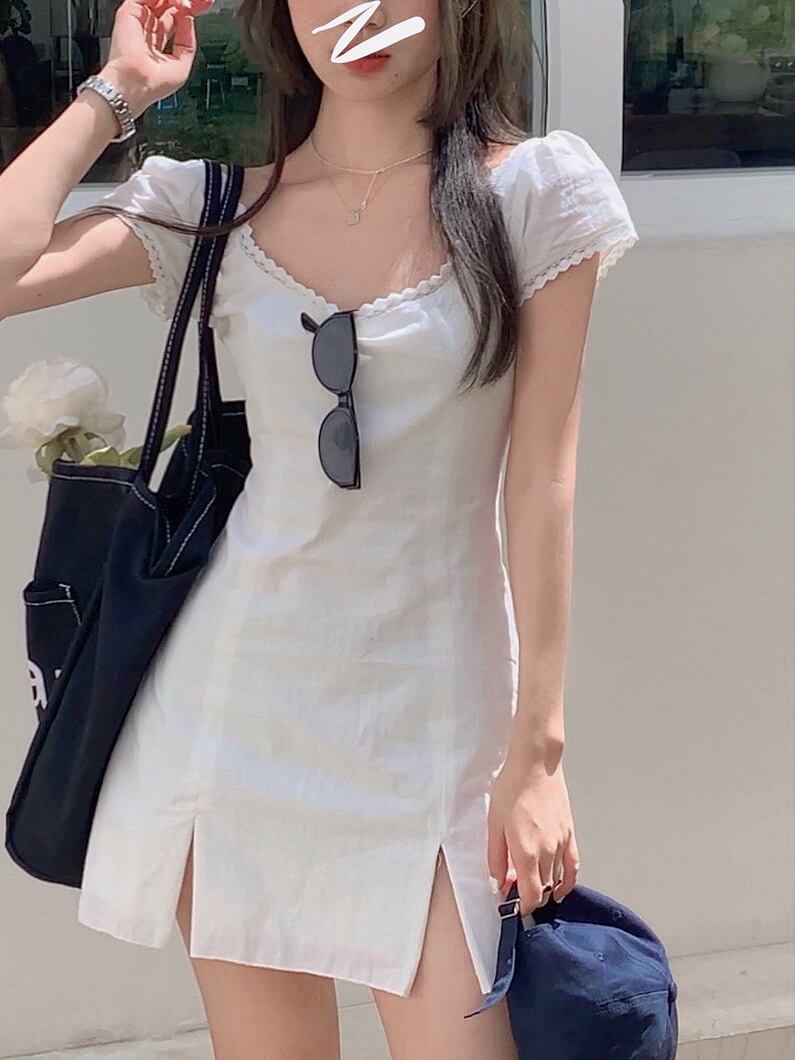 ホワイトスリットドレス サマーレースウェストスリムショートスカート 夏物 フラワークラフター10368514597
