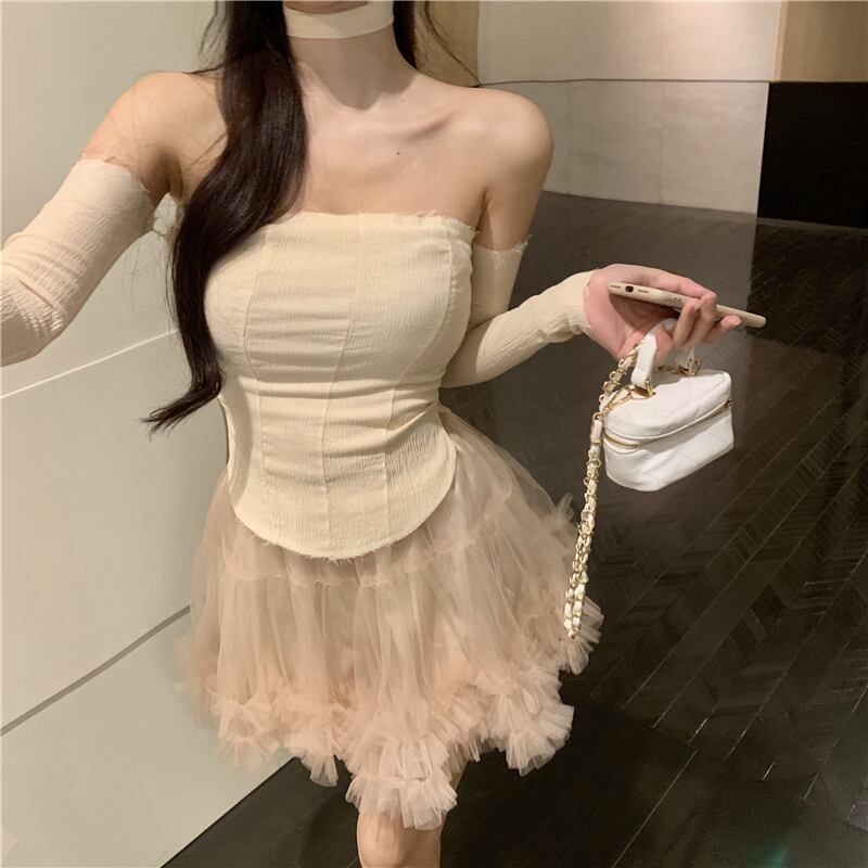 色:ベージュのトップス,ブラックトップシングルピース,ベージュスカートワンピース,黒スカートワンピース