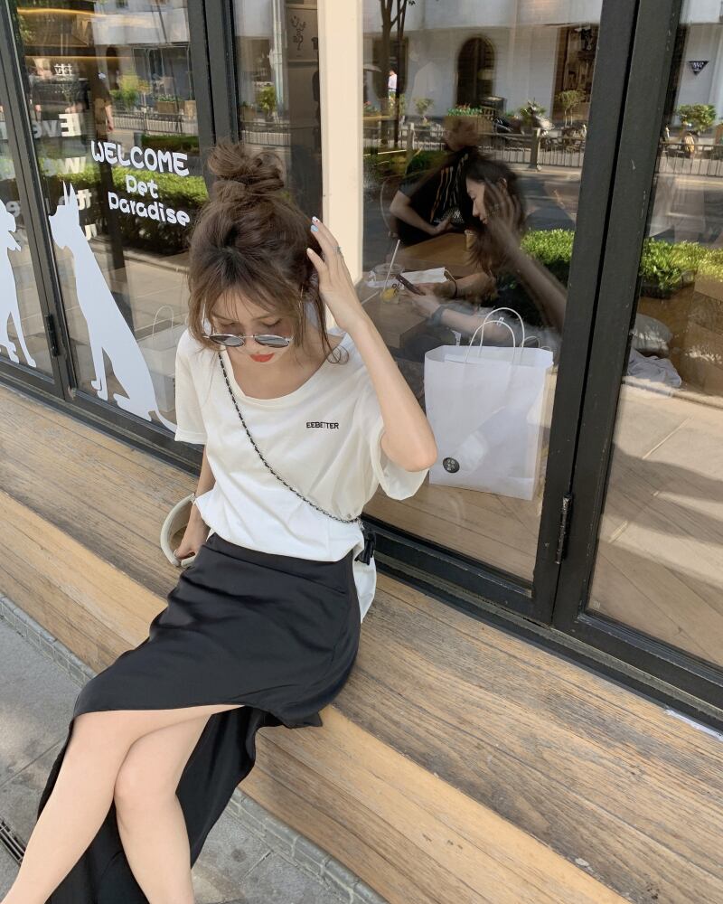色:ホワイトTシャツシングルピース,黒スカートワンピース