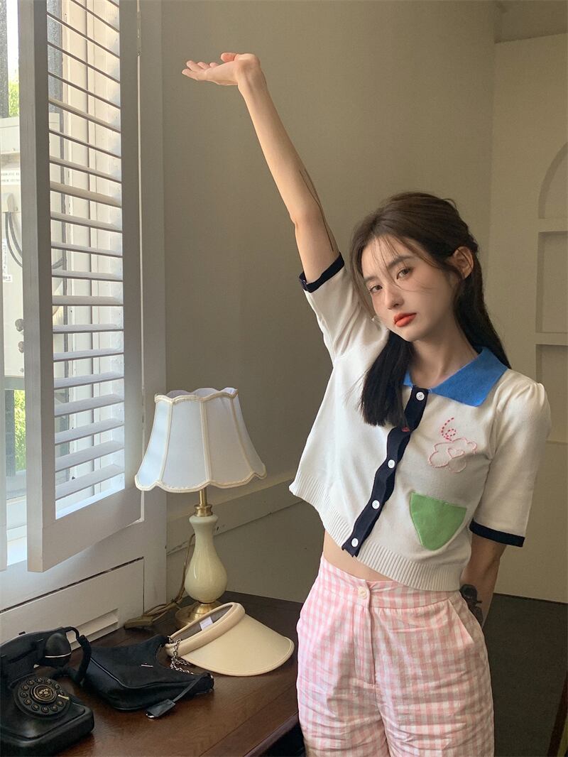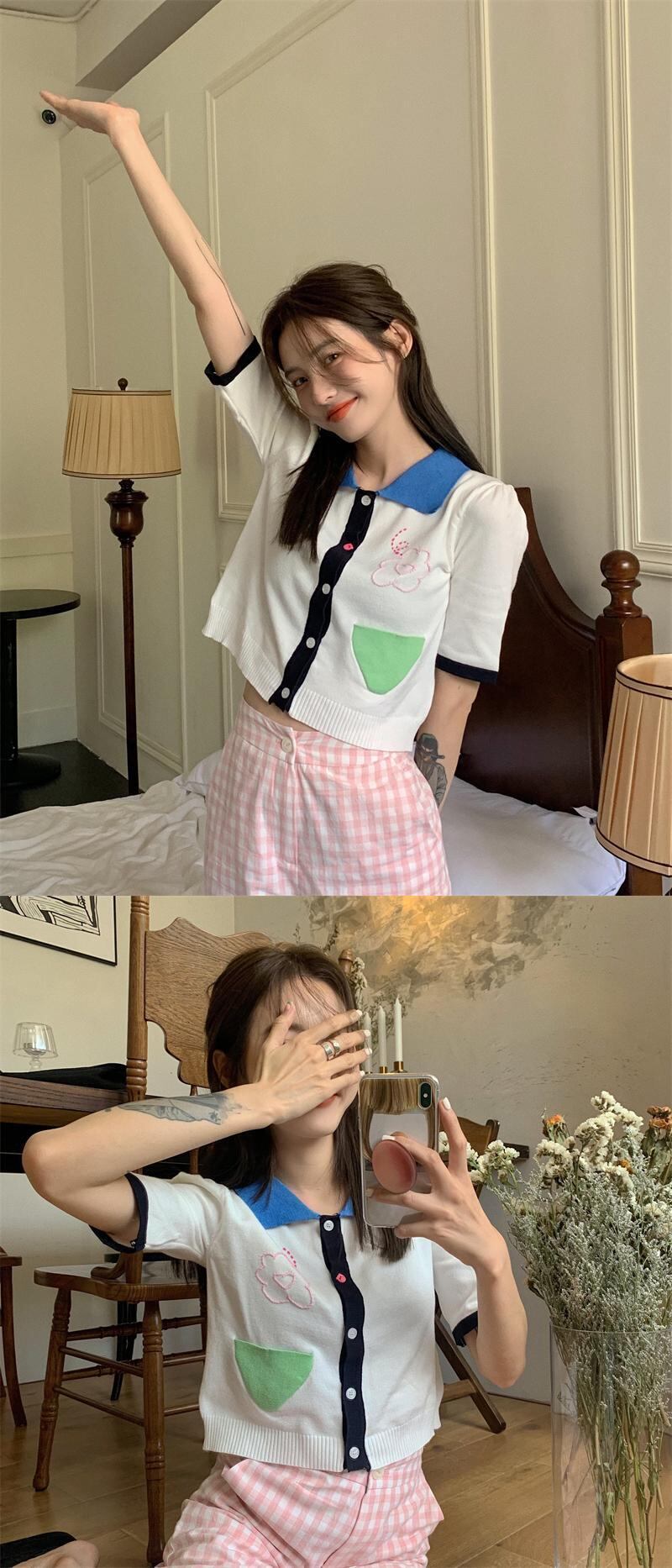 カラーショートニットカーディガンサマースタイルトップス 夏物 フラワークラフター89718917906