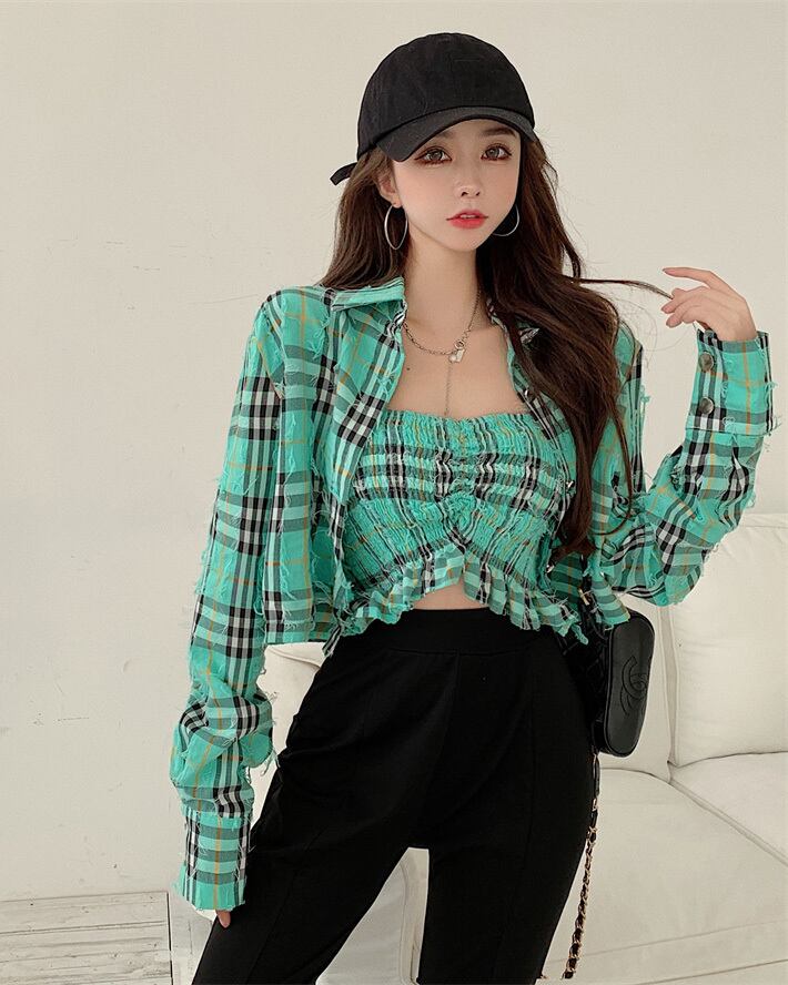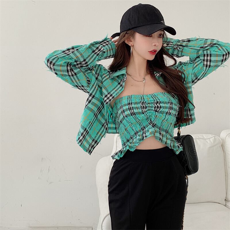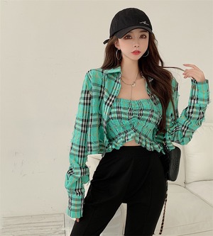 格子柄シャツ サマールーズ薄手ジャケット ショートトップス ロング 夏物 フラワークラフター70490918164