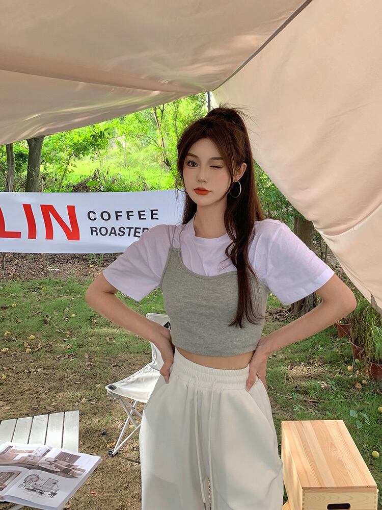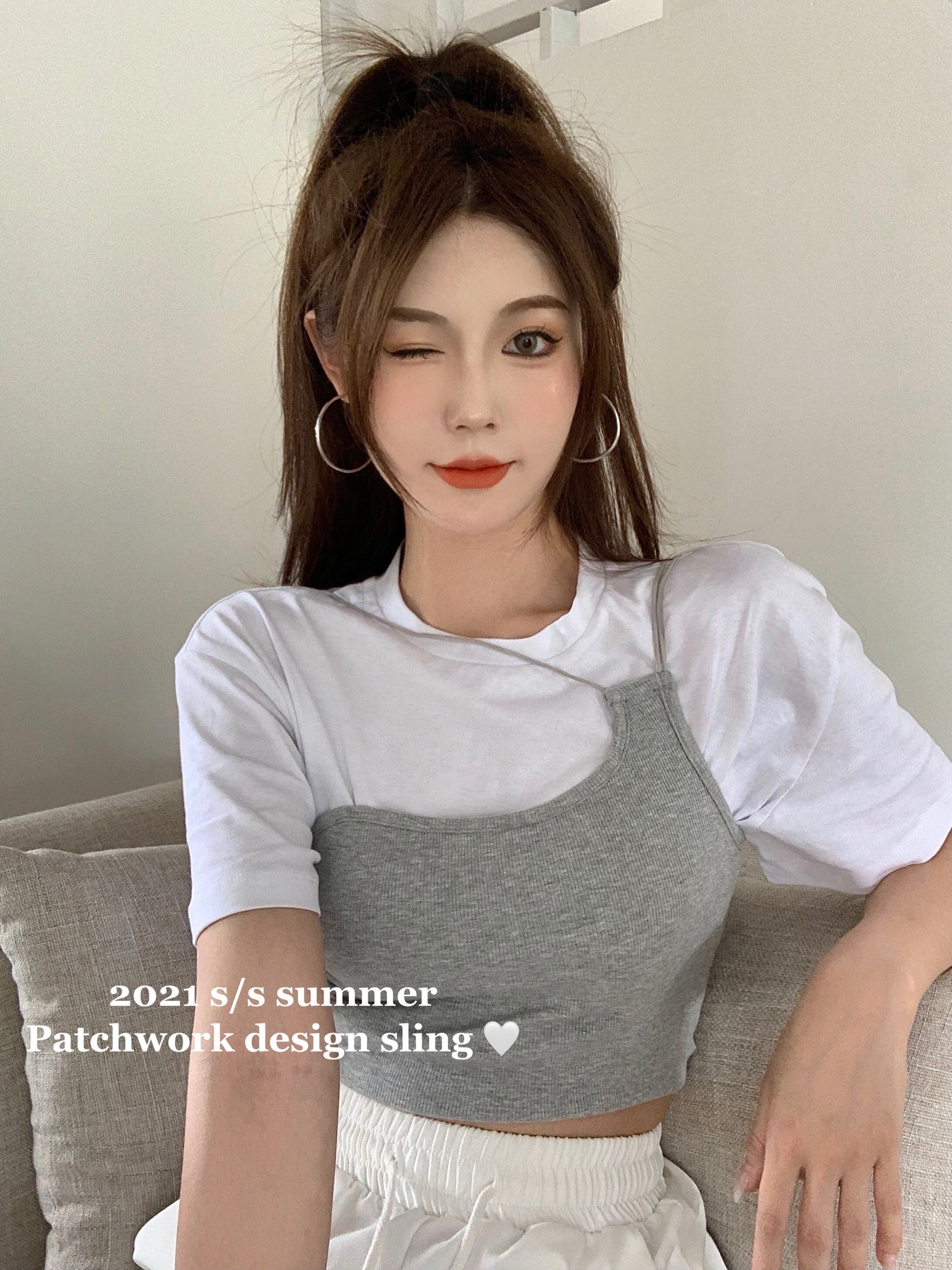 ショートTシャツ サマースタイルスリムトップス 夏物 ステッチ フラワークラフター67752458853