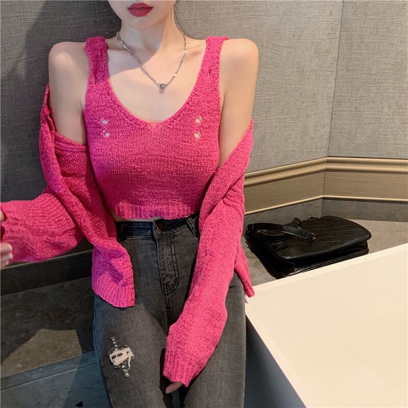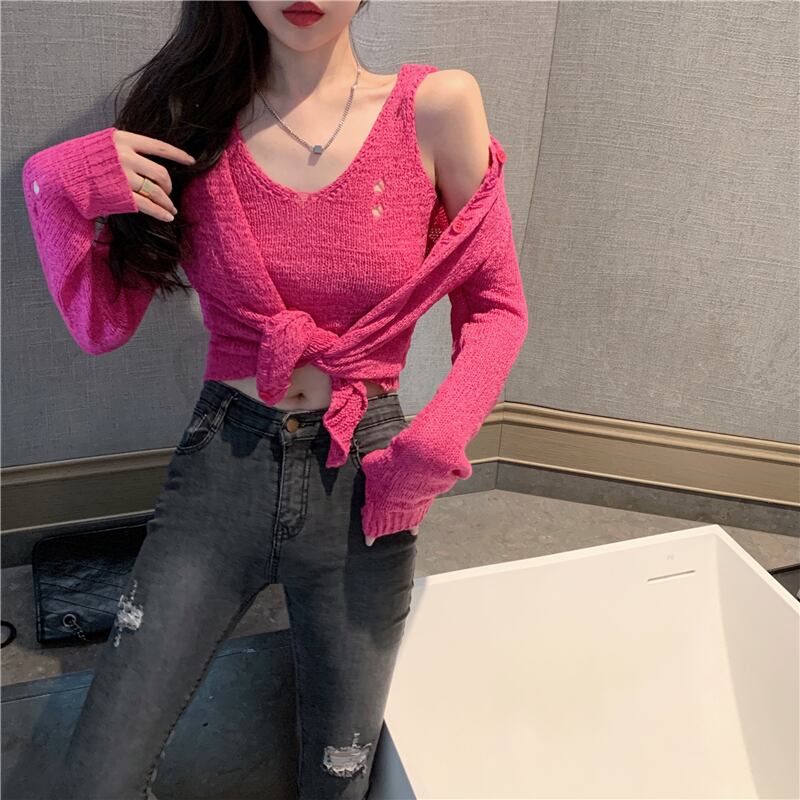 ニットカーディガンサマー薄手スリム ロング 夏物 フラワークラフター9013433887