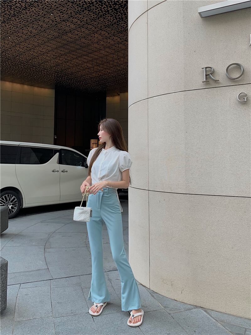 ブルーカジュアルパンツ サマー ハイウェスト レッド 夏物 フラワークラフター9140183675