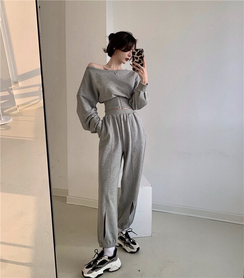 パンツ スプリングオータムショートセーター セット ストリート 春物 秋物 フラワークラフター58379062934