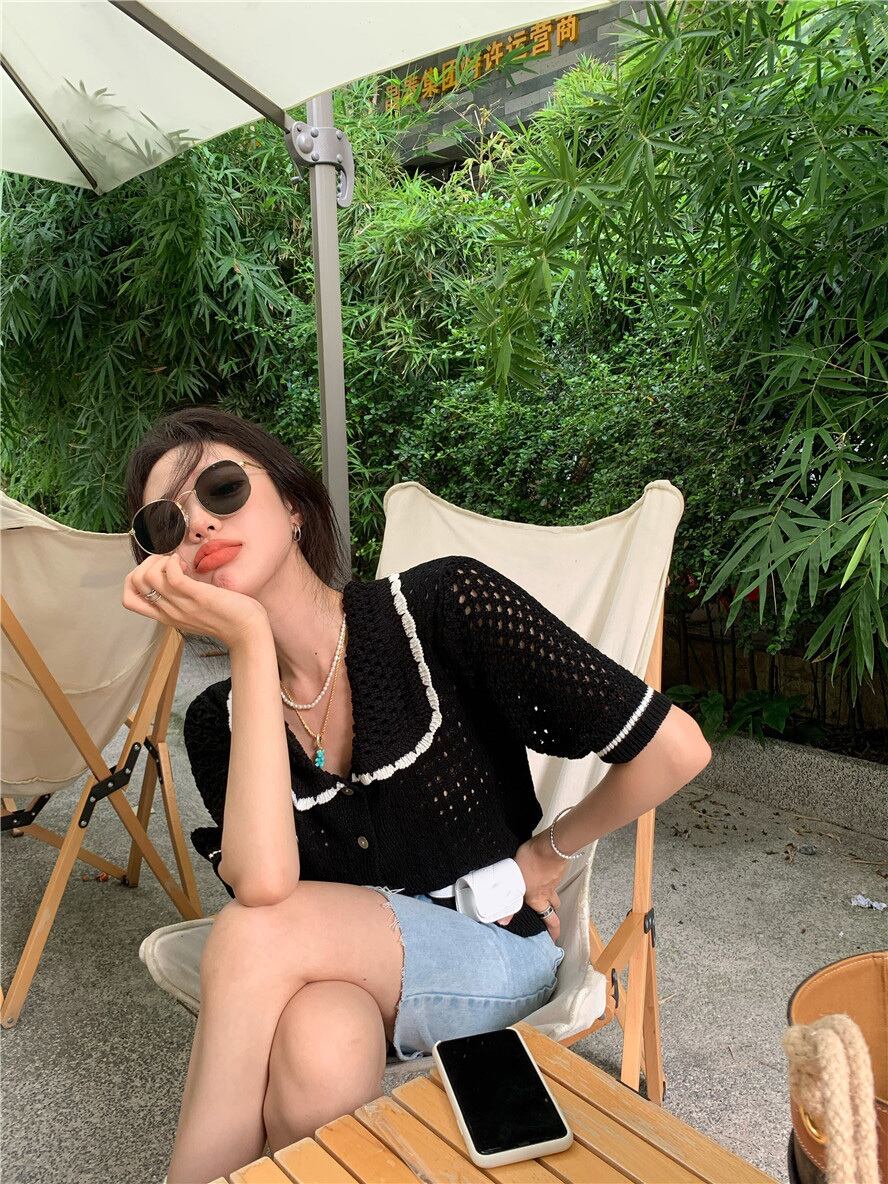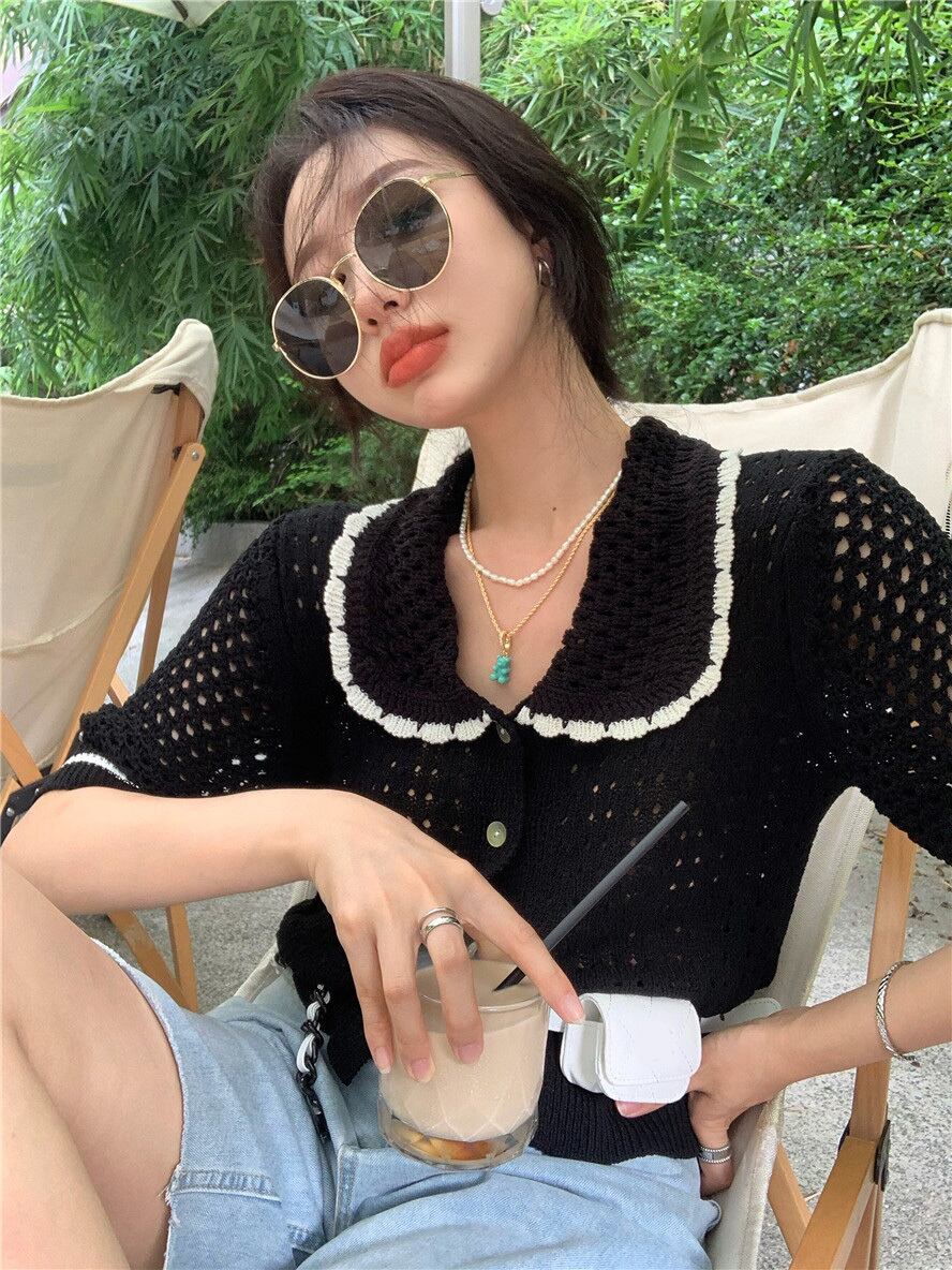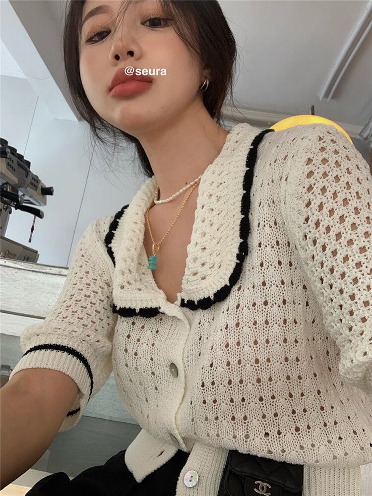 ショートニットカーディガンサマー薄手スタイルトップス 夏物 フラワークラフター41688078690