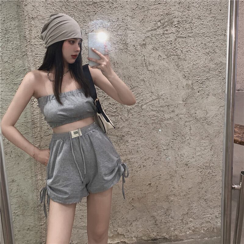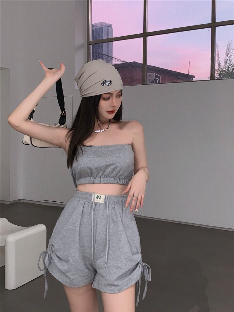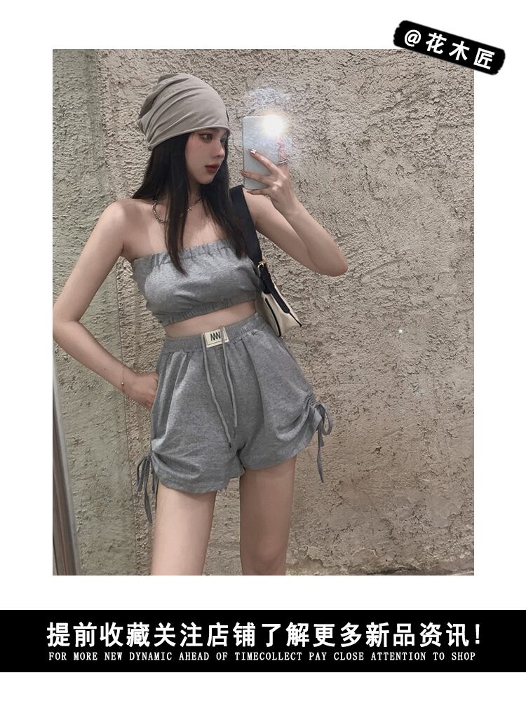 グレーショーツ サマー薄手ハイウェストパンツ ギャザー 夏物 ブルマー フラワークラフター60111395803