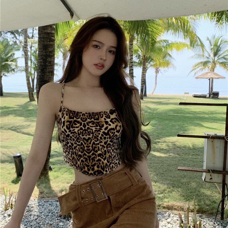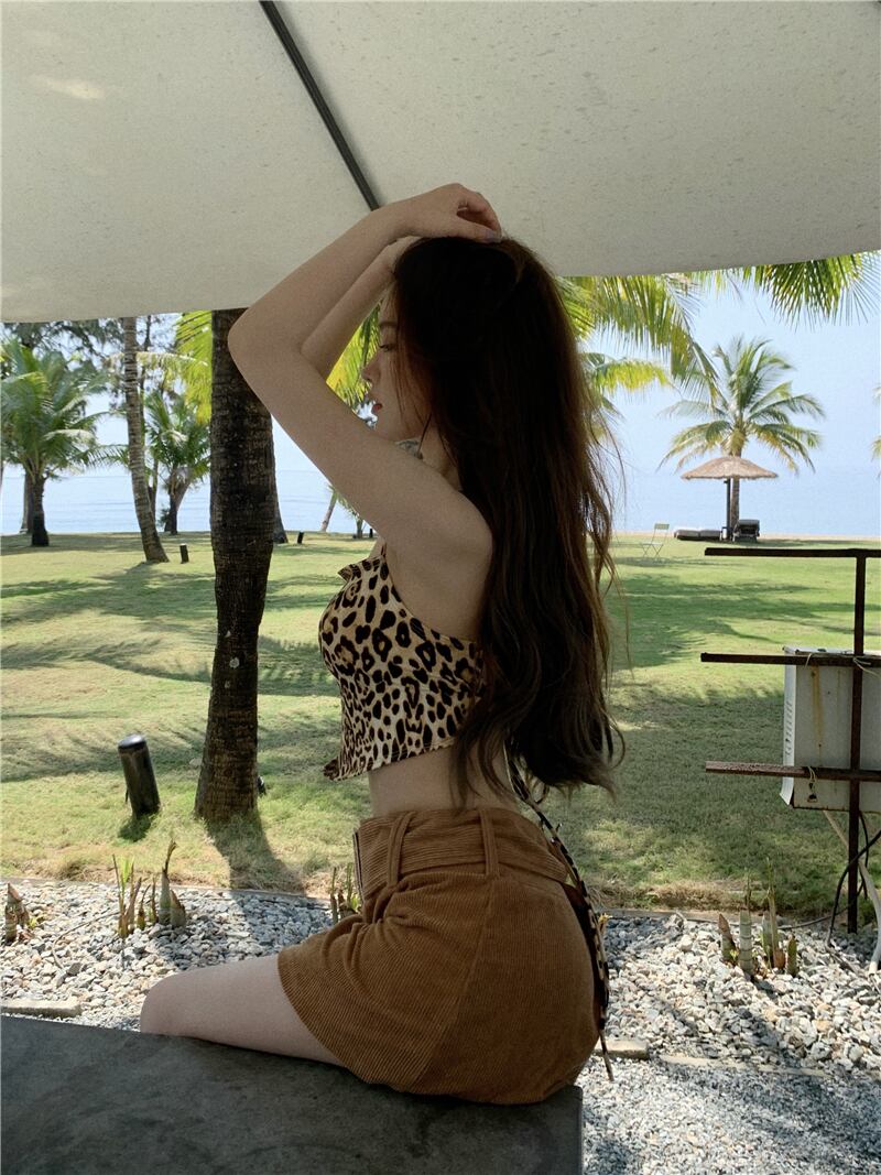 レオパードプリント柄サマースリムバックシャツ レッドショートトップス 夏物 フラワークラフター95401079475