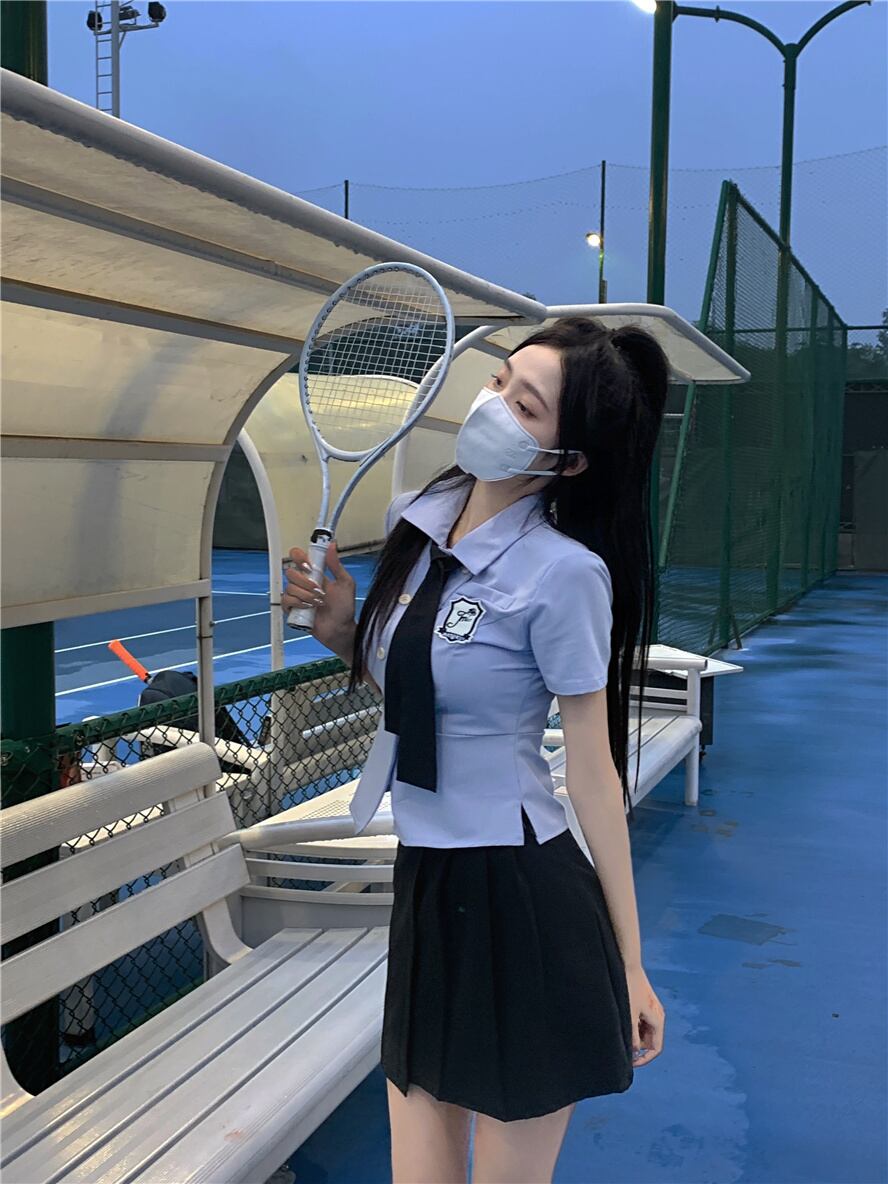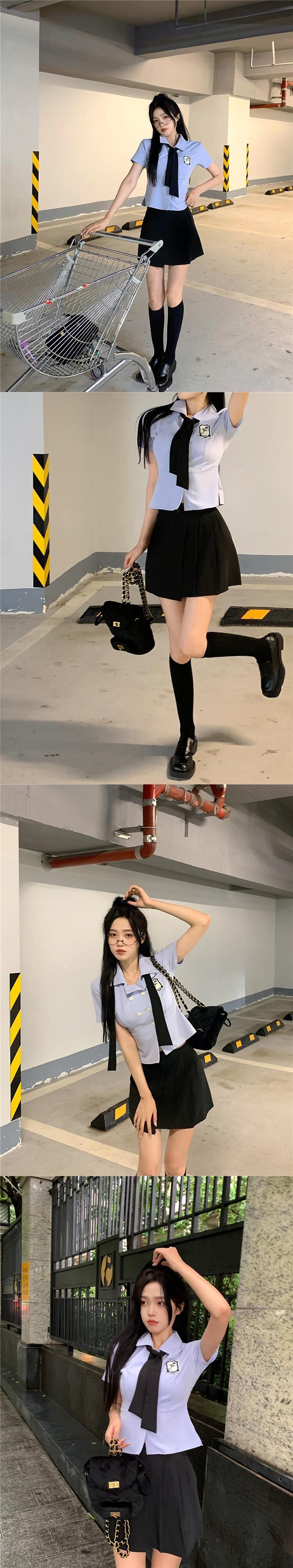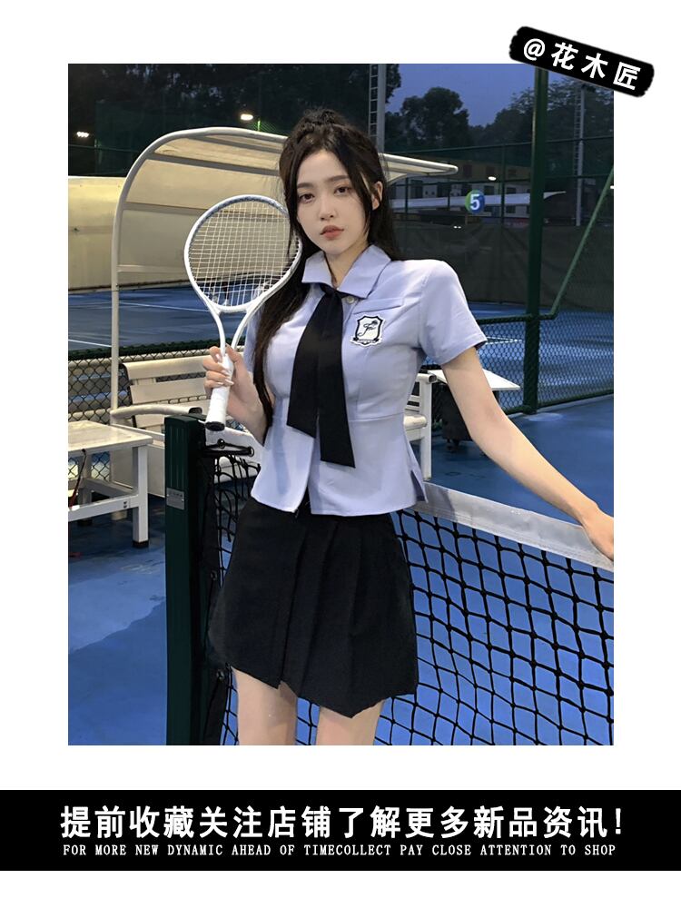 ブルーショートシャツ サマースタイルスリムスリットトップス 夏物 フラワークラフター14145954697