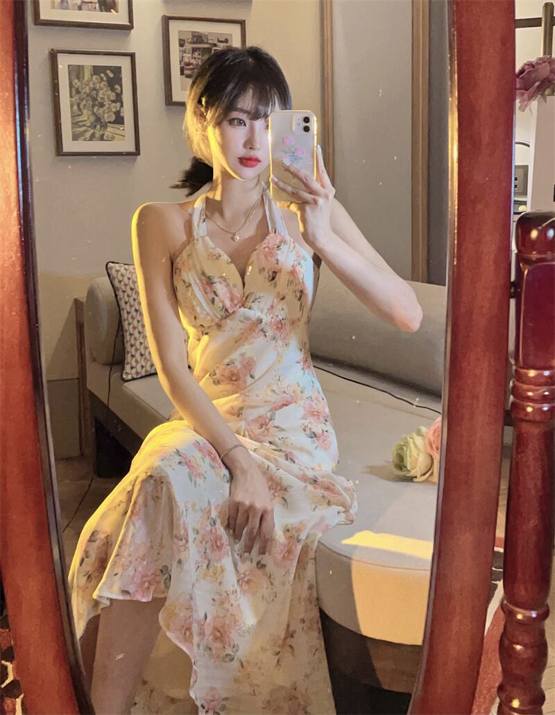 ホルタードレス サマーフローラルスカート スリム 夏物 花柄 フラワークラフター59514995366