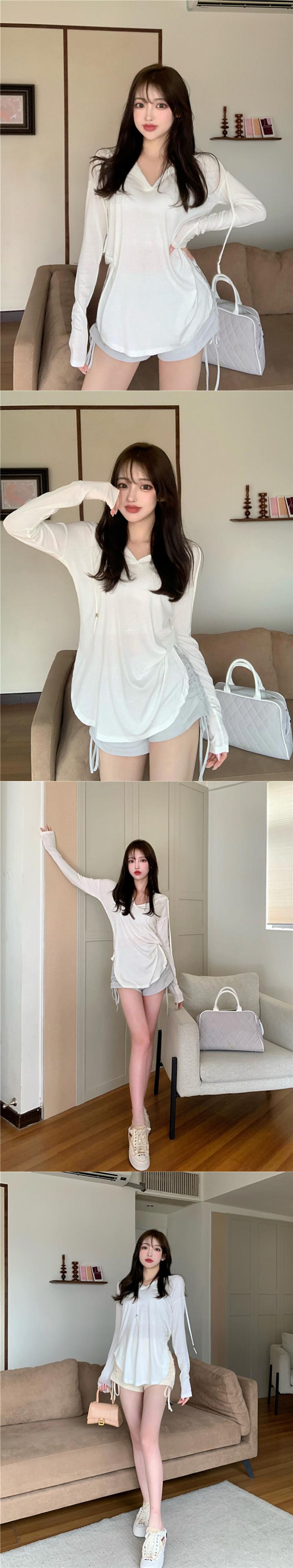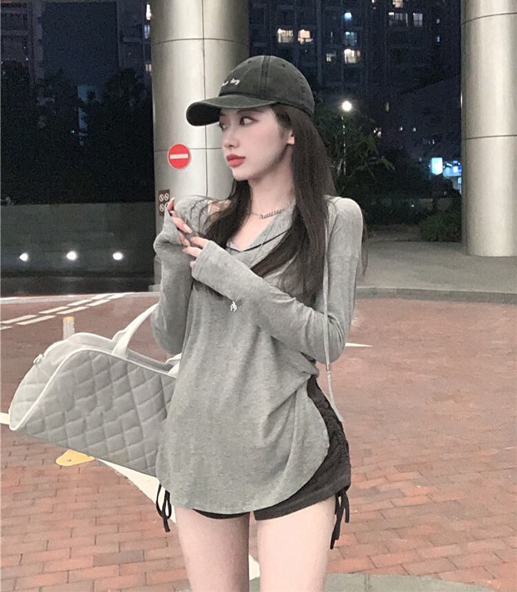 フードTシャツ シャツ レディースサマー薄手レッドルーズトップス ロング 夏物 フラワークラフター46057297514