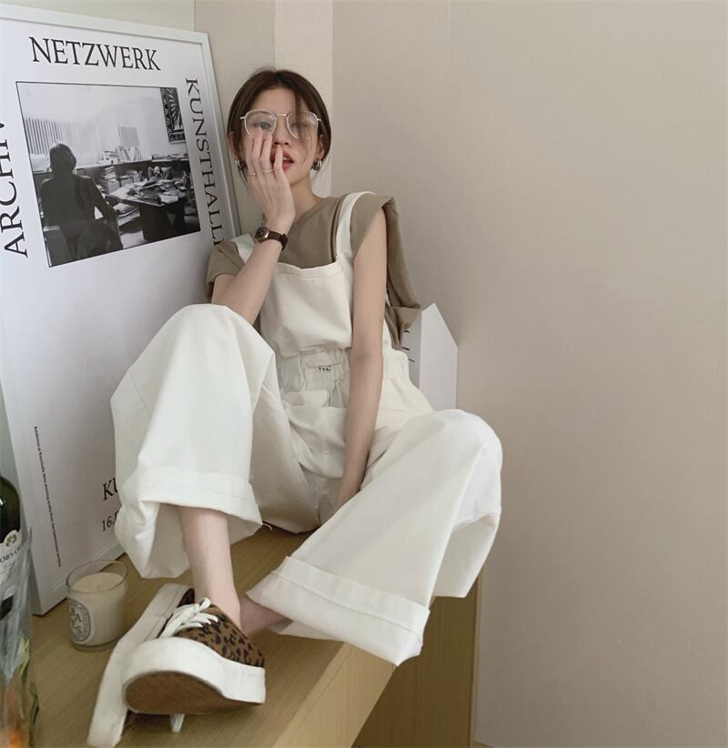 ホワイトオーバーオール サマースタイルルーズジャンプスーツ オールインワン パンツ 夏物 フラワークラフター44122530929