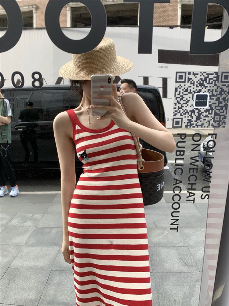 色:赤い縞模様のドレス,外側は黒でワンピース