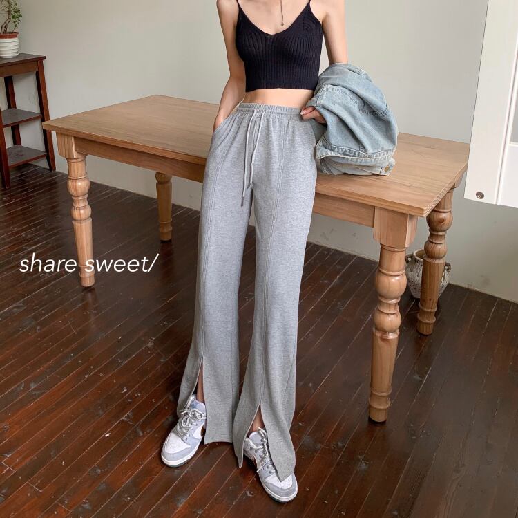 スリットカジュアルパンツ ルーズサマーハイウェストスリム レッド 夏物 フラワークラフター75419163260